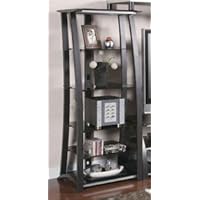 The shelves are black glass and the frame is a black mat finish, matches most TV glass tables perfectly. Love it!
