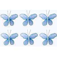 2" Blue Mini (X-Small) Glitter Butterfly Butterflies 6pc set - nylon