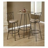 Monarch Specialties Metal Diameter Bar Table, 30-Inch, Cappuccino/Marble/Coffee