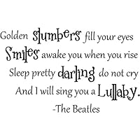 One of my favorite quotes from one of my favorite Beatles songs. So happy to display it in my home.I really liked the font, but then quickly realized that the quote is incorrect. The final line should be "And I will sing a lullaby".We realized why this product was so cheap compared to other wall graphics, it wouldn't stick to the wall! My husband had to remove each words and stick it to the wall. Took about an hour to hang up.Very easy to put on the wall and it looks great! Would highly recommend it to any Beatle fan anywhere....thought it was peel and stick..but it is a rub on decale and takes some effort..if you muss a spot it gets messed up...