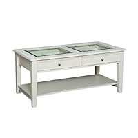 I really like this table. It looked very nice in my beach condo with shells in the glass windows. The only problem I have with it was that it was not as white as I would have liked. I actually had to paint it to match my white accents in the house. So beware that if you want a pure white table, this might not be the one for you unless you want to paint it like I had to. Otherwise it was sturdy and looked great. I bought this table for our beach house, and it looks beautiful with the shells, rocks, and beach glass in it. It is a little too shallow to put glass balls in like I had hoped, but it is a beautiful addition to our home. The only problem we found was one of the drawers is a little warped so we cannot open it to put our treasures inside. It seems like too much trouble sending it back since this is a vacation home and we are not always there, so we ended up just lifting up the glass to make our display. If it weren't for this problem, I would have definitely given it 5 stars.Buy Southern Enterprises Valley Cocktail Table Now