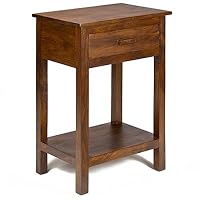 This is a gorgeous nightstand. It is solid wood and a has more of a dark reddish tint than can be seen in the picture. This was fine for me as it fit my bedroom set perfectly and has a handcrafted look/feel to it. I love all the products from C.G. Sparks but a lot of them are just too expensive. I think their nighstands/end tables are the best deals they offer considering the fact that you can easily pay 100-150 on a prefab, made in China particle board nightstand you just can't go wrong with this piece which is sturdy, with a beautiful stain that is actually made out of real rosewood. This piece ranges in price from $175-205 depending on where you look; I bought it through Wayfair (via Amazon) because it is the least expensive option that I came across but be sure to shop around on this one. If it fits your budget and you like the "worldstock" look, go for it, you won't regret it.this was mentioned in the other review but i ordered this based on the colour and the height (its unusually tall)... unfortunately when the table arrived the wood is quite a lot darker, almost like a dark cherry i uploaded a photo so you can see the difference. im not *overly* OCD so i can live with the slightly mismatched furniture, and that aside, its very nice and solid well built. actually arrived fully constructed in a huge package, i was expecting to have to assemble it myself. i give it 4 stars just because of the difference in colour.