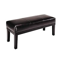 We purchased this bench to go with the leather headboard and footboard we purchased for our master bedroom in our new house. We love the bench, good quality, sturdy and looks great. Delivery was easy and putting it together was easy. Great product for the price!Great adult playroom addition. Sturdy build. Top surface very comfortable for long term use. Easy clean surface. Looks dark and inviting.So, we received the bench timely, and it did not take much assembly (initially we put the legs on backwards on accident which makes a big difference in the look! lol). As other reviewers have mentioned it is very dark, I would say black rather than dark brown. We decided to go with this bench because of the padding since my husband wanted something comfortable for guests to sit on. It does seem to have a lot of padding, but it does not seem overly comfortable, not much give when you sit down. Decent bench for the price, just wish it had a slightly more brown color to it.