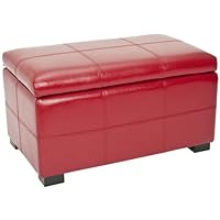 This seems to be a well-made, nicely covered item. It holds 4 throws easily. The color may not be quite as bright red as it appears in the listing, but it is a beautiful color, and definitely red. I am very glad I bought this versatile piece. Would highly recommend to others.Terrific looking leather storage bench. Very well packaged for shipping. And it was exactly as shown in the photo so it matched the chair we had perfectly.Buy Safavieh Hudson Collection Williamsburg Red Leather Small Storage Bench Now