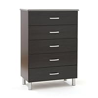 This dresser looks nice, but it is of poor quality. The drawers do not hold much weight and the piece holding the drawers keeps coming off. I quess you get what you pay for.This furniture (the whole collection) is cheap, particle board. I do not suggest using this furniture for a child's room. We bought the collection (two twin beds, the 5 drawer dresser and another dresser) for our sons' room. My oldest son is 4 1/2. This morning he jerked the top drawer open on the 5 drawer dresser, and the front of the drawer came off in his hand, sending the rest of dresser down on top of him. He's okay, but we are returning this furniture immediately.Buy South Shore Furniture, Cosmos Collection, 5 Drawer Chest, Black Onyx and Charcoal Now