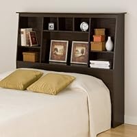 I bought this headboard because I have limited space in my bedroom. It was very easy to put together with a partner and looks great; I have gotten a lot of compliments from friends and family. Three things to note: be careful when placing screws in top piece as they will go through and you'll end up with ugly bumps in the finish; there are no holes cut for electrical cords so you'll have to cut your own; and you need to have the screws that came with your bedframe to attach the headboard (no hardware is provided for this). Otherwise, its a nice piece of furniture and I'm very glad I bought it.The product arrived very shortly after placing the order. It was easy to esemble although the pieces are not labeled and the directions are slightly poor. The problem is that I bought the matching bed with 12 drawers and it covers the bottom part of the headboard where the picture frames are shown in the above photo. Maybe it is because I used a real mattress, not with box spring, instead of a thin memory foam matteress.This product was pretty easy to assemble even though the pieces are not marked. The workmanship of material is terrible. Scratches and nicks on every piece. A few of the dowel holes had plastic tips broke off so they were inoperable. Even the back paneling was damaged. In the end I wouldn't recommend this to others. Too much damge in the material. Doesn't look new. Looks like someone had purchased it beforeseen all the damage-repackaged it and then sent to me :(We love this headboard it was easy to put together and looks great. Definitely a good buy for someone looking for some extra storage.I really like my headboard. The directions could have been a little bit better. I would not have been able to do it myself so my 16 year-old grandson put it together and should have used a rubber mallet at one point as a regular hammer put a hole in one of the boards. I was watching him and it wasn't his fault. We filled it in and colored it so it is not obvious. It has floor protectors already on it which is always my concern since I have hardwood floors. It is free-standing which works since my storage bed is queen-size and too high to attach it.Queen Size Storage Bed PLUS Bookcase Headboard (Espresso)