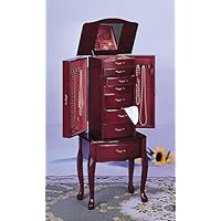 Buy Deluxe 7 Drawer, 2 Door Queen Anne Style Jewelry Armoire Mahogany Finish Wood Now