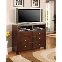 What can I say I bought this for my preteen son and when I say it was beyond what I expected!!! Whew!! Shoot I am jealous of his room now. Let me start off by saying my son has 2 game systems a cable box and a remote charger and 47 inch TV (yeah he is the only child...lol) anyway he had more than enough room for storage underneath in the cubbies and it looks so rich in his room. I ordered 2 matching pieces which come tomorrow I am praying that I be just as happy!!! The package was shipped with so much care and I can not begin to say I got more than a bang for my buck on quality and usefulness!!! And oh of course my son loves!!! It was much bigger than expected and the color is really rich!! I have no cons what so all!!!!!! I am in love!!! And believe me I am very picky when it comes to furniture I have redone my room 4 times in the last 5 years because I wasn't pleased!! I do believe Coaster has a new lifelong customer in me!!!! : )If you're looking for something more spacious to store clothes, I would go with a regular dresser, not a TV dresser. Also, the overall fit and finish is not top-notch, so don't expect to get a super-great quality with this dresser. For the price, I think it's OK, however. It did arrive fully assembled, quickly, and the packaging was high-quality.Buy Loretta TV Dresser In Deep Brown Finish by Coaster Furniture Now