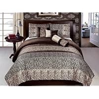 New 7 Pc Full Size (Double) Zebra Leopard Safari Bedding Brown Black