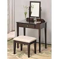 Received this vanity for Christmas after putting it on my wishlist, and was very pleased with it--especially considering the price! It came well packaged, and was easily assembled. Both the table and bench look exactly like the photo, and the whole piece is perfect for a small space. I definitely recommend the item.I purchased this vanity for my bedroom, I am a 36 year old woman. This vanity is appropriate for a teenager at best! It looks miniature and ridiculous next to all my "adult" furniture. TThe quality is decent so I will keep for a few months or a year just so I can get my money's worth but in retrospect I wish I had bought a different, larger and more adult appropriate model.