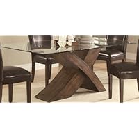 Buy Dining Table with Glass Top "X" Base Design in Deep Brown Finish Now