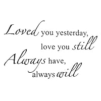 The only thing we didn't like was it actually has a misspelling! When it came it said "Loved you yesterday, Loved you still", it should be "Love you still". We were able to take off the "d" without messing it up, you just have to be careful.Very easy to apply and looks very nice on the wall. It arrived packaged very nicely too. Ordered multiple items shipped together.This applique brings a bit of romance to my bedroom. When my husband saw it, he was highly impressed at how good yet simple it looked.