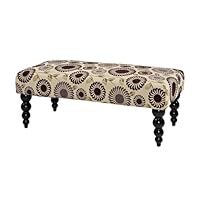 I purchased this bench for a spare bedroom. The legs were easy to attach. Height is a couple of inches less than a regular chair the fabric cover looks very yellowish so i upholstered it with my own modern fabric to match the decor which made this bench look a lot amazing. The price is very reasonable for this bench.This product is so so. I liked the vibrant color and design when I saw it on the website. The actual product color is not as vibrant or fresh looking as shown on the picture. It has a gray/yellow background color with dull green and purple patterns. Overall, the piece looks kind of dull comparing to the picture. But it otherwise serves the basic function, and is easy to assemble. I don't think the price is worth it thought. I probably won't buy it again.Buy Claire Bench with Black Legs Now