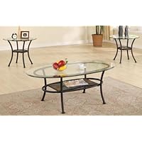 3pc Metal Coffee Table & End Tables Set in Black Finish